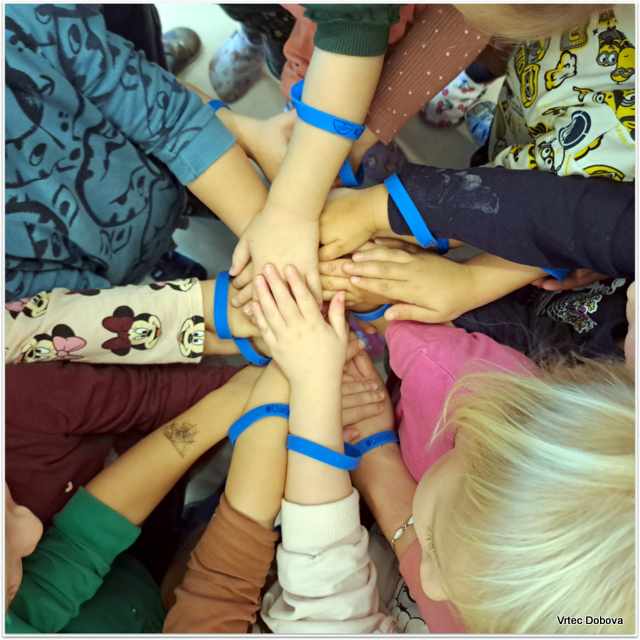 Na 14. november, svetovni dan sladkorne bolezni, smo si vsi – otroci in zaposleni nadeli modre zapestnice, ki nam jih je podarilo Društvo diabetikov Slovenije in se odpravili na sprehod po okolici. Tako smo simbolično tudi mi s skupnimi močmi darovali nekaj kilometrov.